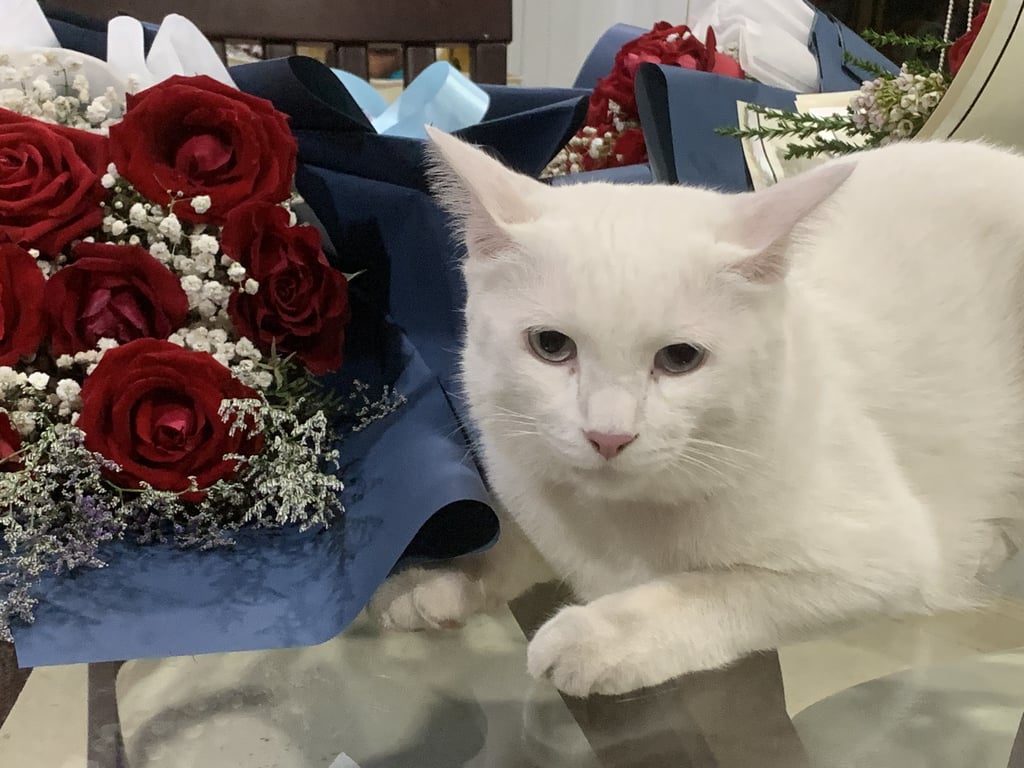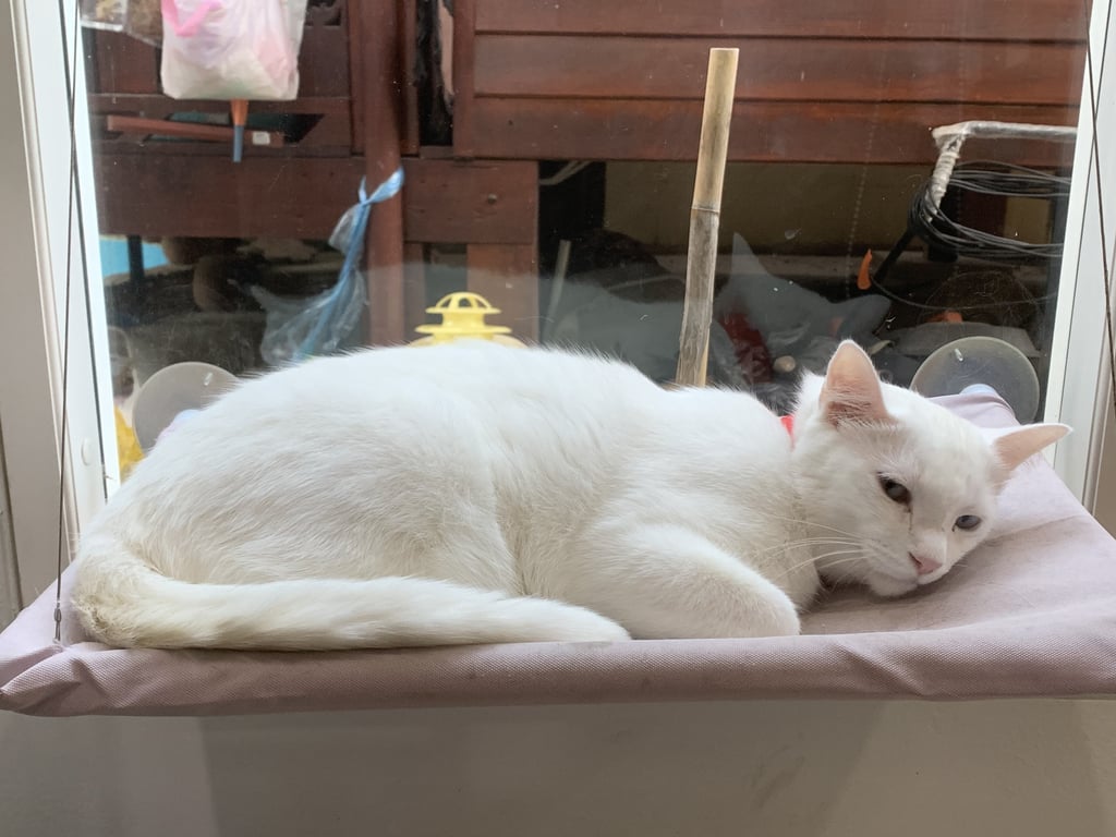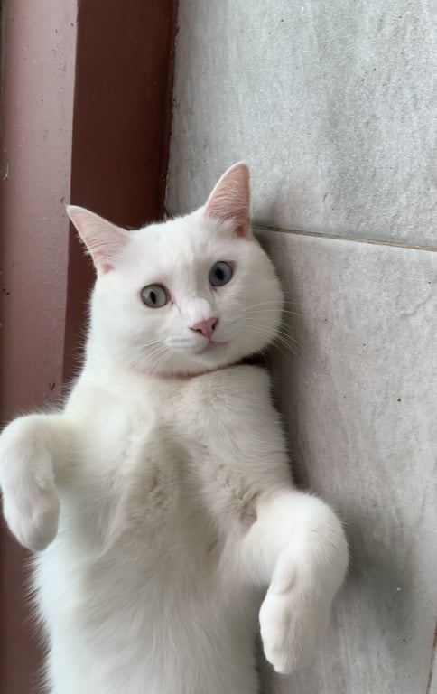 สี: ขาวล้วน ใส่ปลอกคอสีแดง