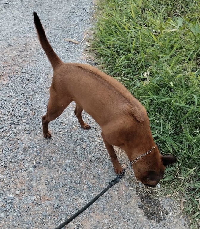 รอยตำหนิ: ไม่มีปลอกคอขี้กลัวระแวง อาจจะมีเห่าขู่เพราะความระแวง แต่จะเข้าหาคนถ้าให้อาหารครับ