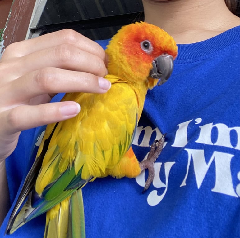 รอยตำหนิ: มีหาวงที่ขาซ้าย มีความลอกทองแดงนิดหน่อยไม่มากถ้าเห็นแมวจะตกใจร้องเสียงดัง ชอบกินเมล็ดทานตะวันและแครกเกอร์ ถ้าพูดว่า ‘จุ้บ’ เขาจะจุ้บปากกลับแล้วหัวเราะ ค่อนข้างเชื่อง มีเพลงเต้นประจำตัว ไม่ค่อยชอบผู้ชาย แต่อาจจะเกาะไปกัดหูได้ ชอบให้ลูบให้เกาหัว