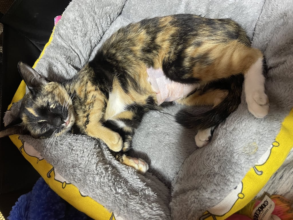 รอยตำหนิ: ใต้คางจะมีสีดำ2ขีด มีปลอกคอสีเหลืองพร้อมป้ายชื่อและเบอร์โทรเพิ่งทำหมันที่หน้าท้องมา ขนหน้าท้องยังมีรอยไถขน มีผ้าก็อตแปะแผลอยู่คะ