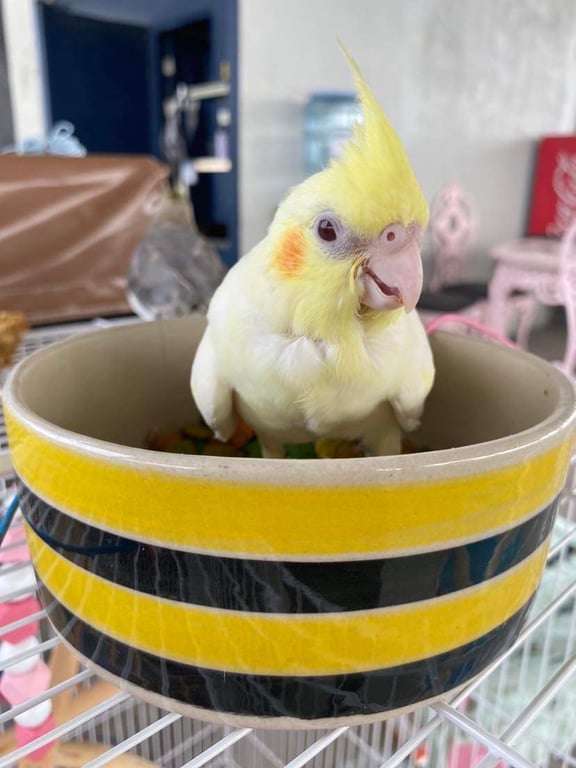 รอยตำหนิ: ห่วงเปิดสีเงินขาขวา ห่วงปิดสลักชื่อนกพร้อมเบอร์โทรด้านซ้ายน้องหายวันที่30 ก.ค.66 เวลา 10.40น.หายออกจากห้องคาดว่าตอนที่เราเปิดประตูจะเข้าห้องแล้วตกใจที่พี่เค้าบินเลยบินหลุดจากห้องไป น้องยังร้องเพลงไม่ได้ แต่จำชื่อตัวเองได้ ชอบเกาหัวมากแล้วเวลาเกาหัวก็จะครางในลำคอ เวลาหอมหรือเอาหน้าเข้าใกล้จะชอบเอาปากงับๆแบบไม่ค่อยชอบ ขึ้นมือได้แต่ยังไม่คล่อง เรื่องเพศยังไม่แน่ใจนะคะยังไม่ได้พาไปตรวจเลือด
