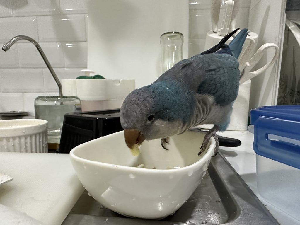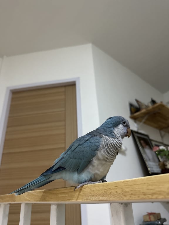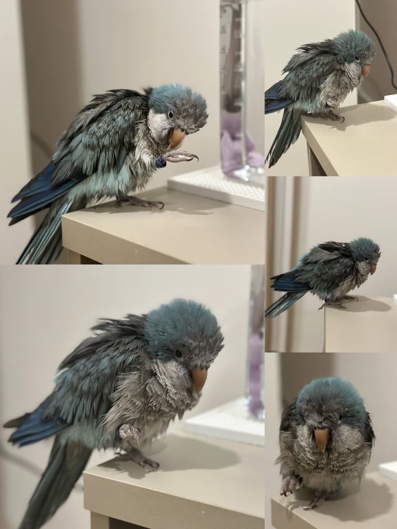 รอยตำหนิ: มีห่วงขาสีน้ำเงิน มีชื่อนกและเบอร์ติดต่อพูดได้ ชอบเรียก ยายครับ ตาครับ แม่ครับ จุ๊บๆ