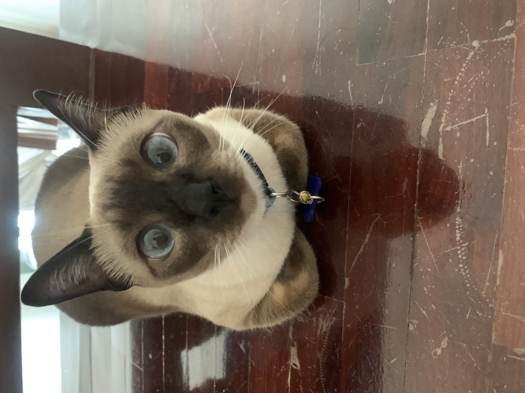 รอยตำหนิ: ปลายหางงอมีปลอกคอสะท้อนแสงสีฟ้า มีป้ายชื่อห้อย พร้อมเบอร์