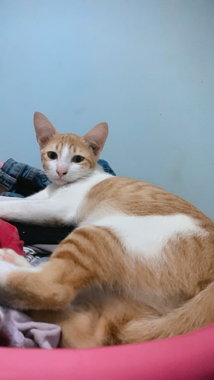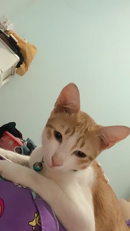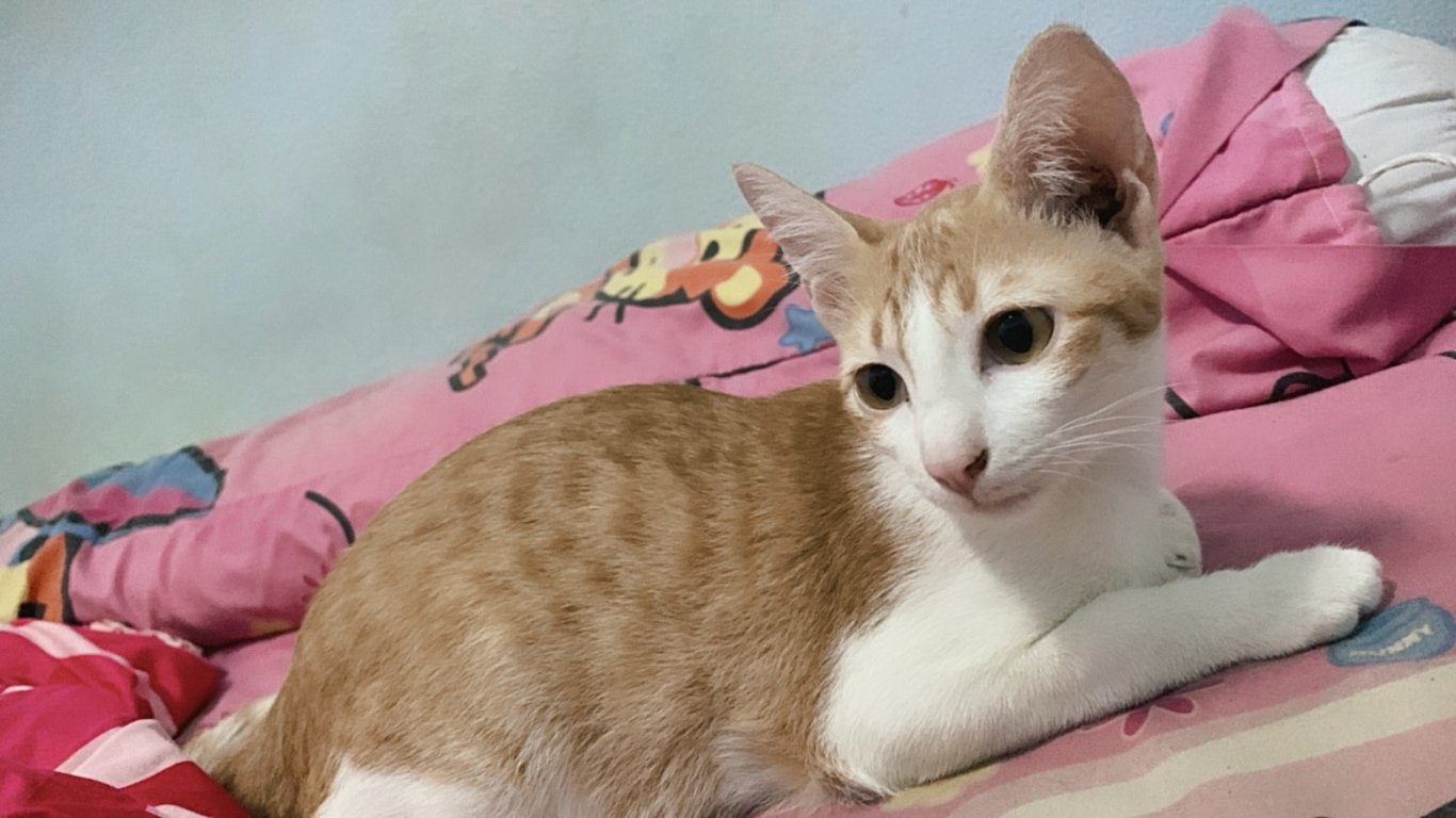 รอยตำหนิ: หางยาว ตรงหางจะขดๆ ปลอกคอสีน้ำเงินน้องขี้กลัวจะชอบแอบ