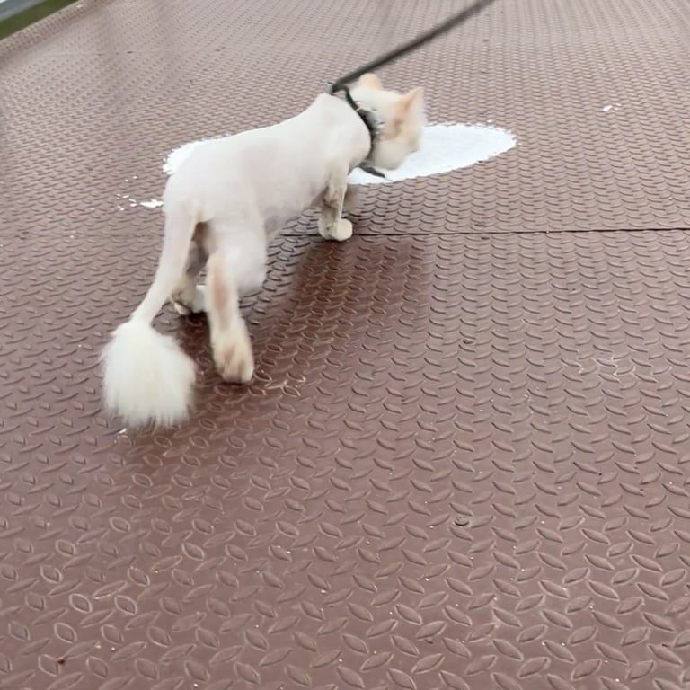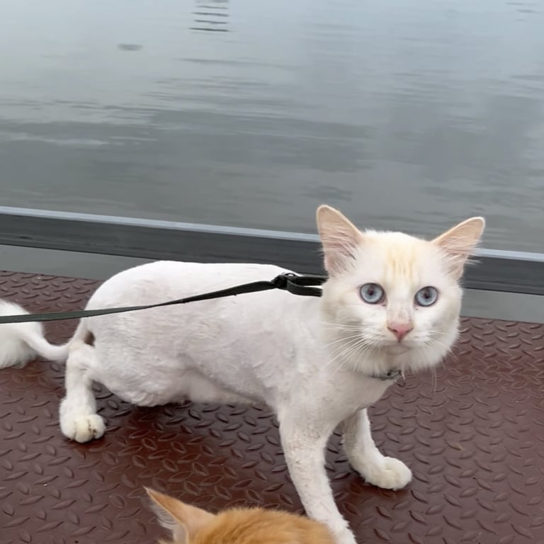 รอยตำหนิ: ตาสีฟ้า มีขนแค่หัวกับหาง (เพิ่งตัดขน)น้องเพิ่งตัขนไปเองค่ะ เลยมีขนแค่ที่หัวกับหาง ขนที่หางจะเหลือแค่ที่ปลายหาง กลมๆ