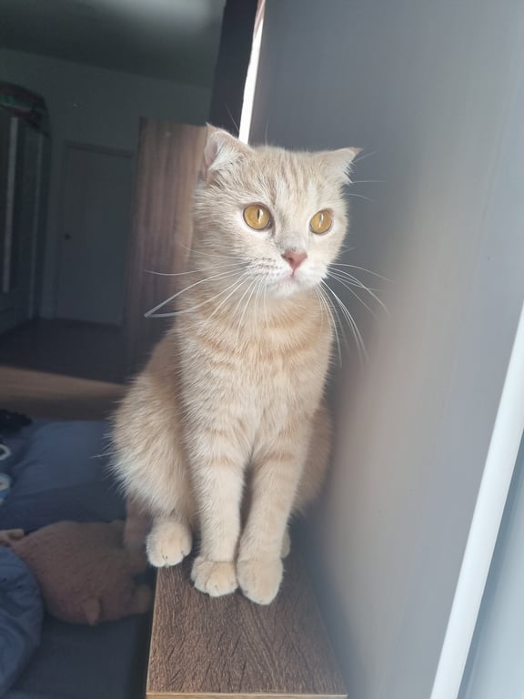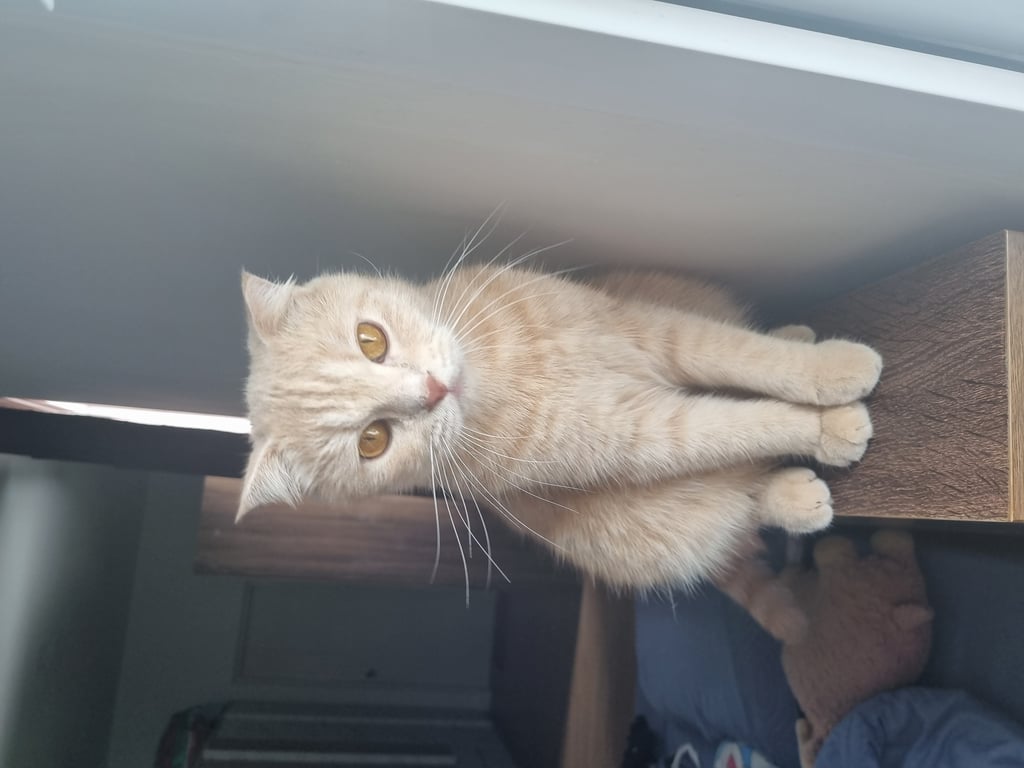 รอยตำหนิ: น้องจะมีรอยเปื้อนที่จมูกนิดหน่อยเป็นแมวสีส้มขี้กลัว แต่เชื่องไม่กัดคนสามารถจับได้แต่ว่าน้องจะค่อนข้างขี้กลัว