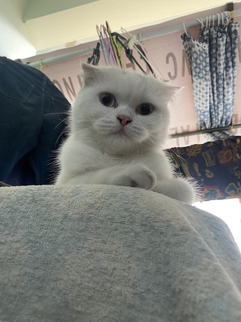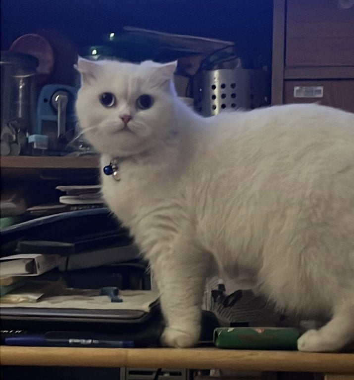 รอยตำหนิ: ตาสีฟ้า อุ้งเท้าสีชมพูนิสัยไม่ค่อยเข้าหาคน ดื้อ หูกางไม่ค่อยตั้ง ใครพบเจอช่วยแจ้งทีจ้าา
