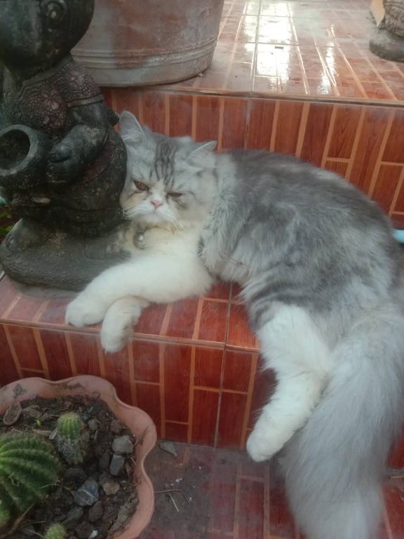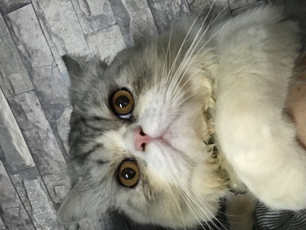 รอยตำหนิ: จะมีขี้ตาเยอะมากๆ ตัวสีเทาอ่อนๆผสมสีขาวน้องขี้ตกใจ ไม่ชอบให้ใครมายุ่ง จี้หงุดหงิด กินเก่ง อ้วน ชอบร้องออกไปข้างนอก ชอบอยู่ตัวเดียว
