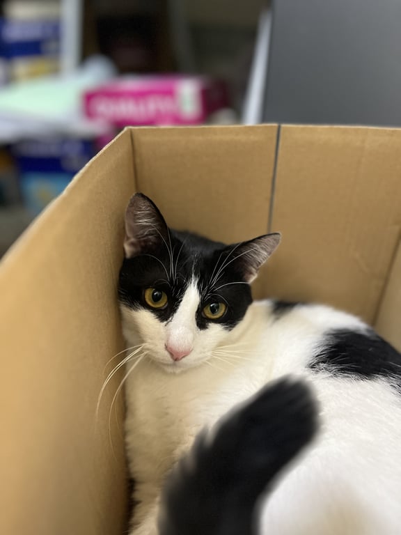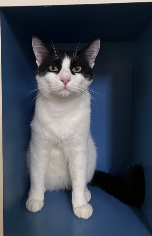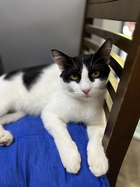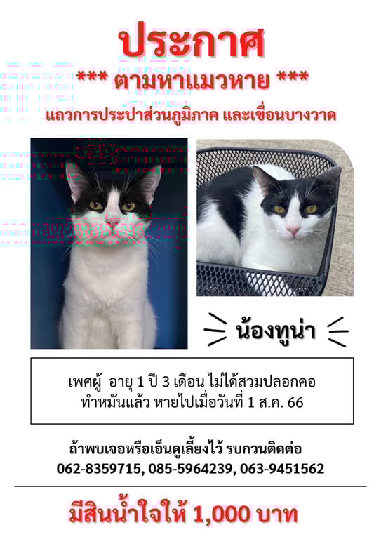 สี: ขาวจุดดำ ใส่หน้ากากสีดำ หางสีดำ