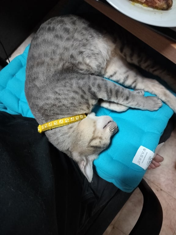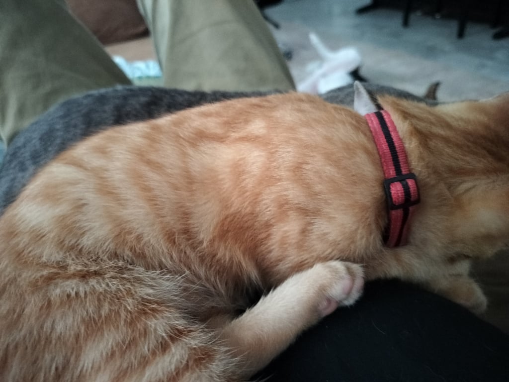รอยตำหนิ: หางกุดงอขี้อ้อน ติดคน ชอบนอนตักคน นิ่งไม่ซน น่าจะติดสัตว์อยู่ ภาพสุดท้ายเป็นลักษณะปลอกคอ