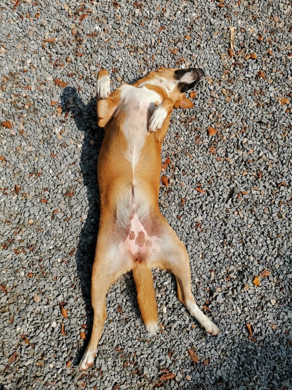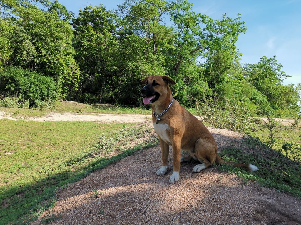รอยตำหนิ: มีใฝข้างแก้มทั้ง2ข้าง เท้าทั้ง 4 ข้างสีขาว ปลายหางสีขาว หน้าอกสีขาว ปากดำ จมูกขาว หูพับทั้ง2ข้าง หน้าผากย่นเวลาเดินหาางจะตกเพราะขี้กลัว หวาดระแวง ตื่นตระหนกง่าย แต่กินเก่งมาก
