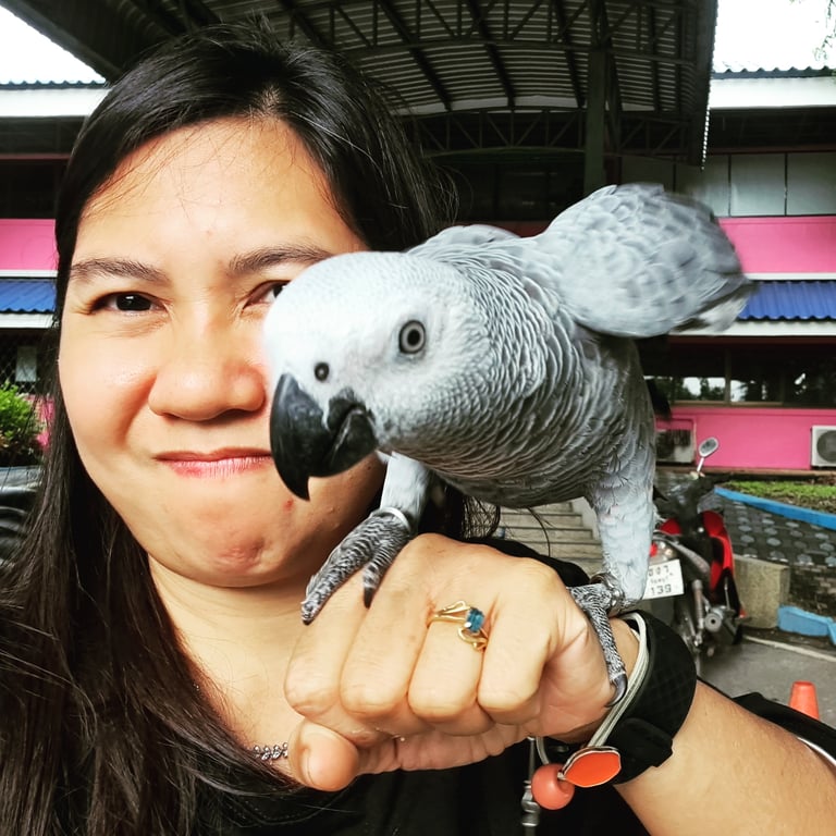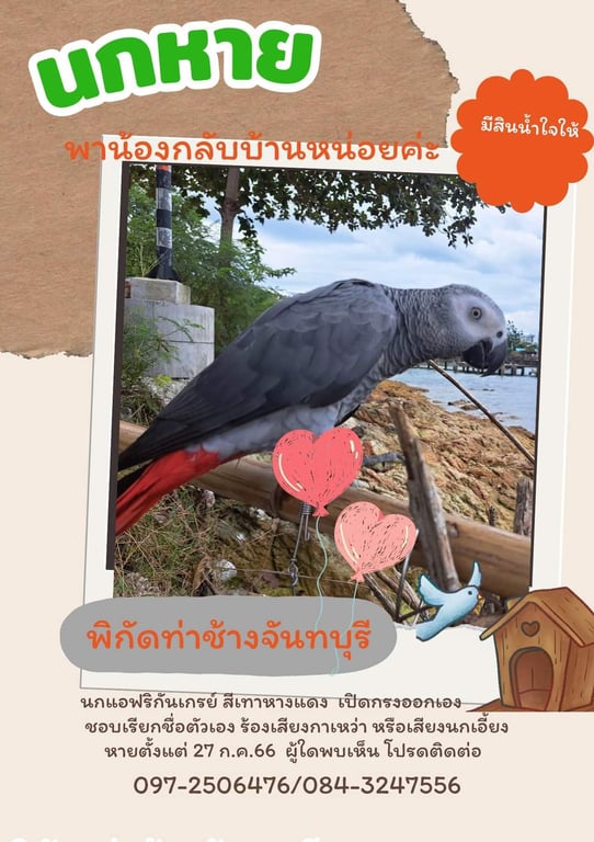 รอยตำหนิ: ใส่ห่วงทั้งสองขา มีเบอติดอยู่ชอบร้องเสียงกาเหว่นกเอี้ยง เรียกชื่อตัวเอง คิ้วววว!!