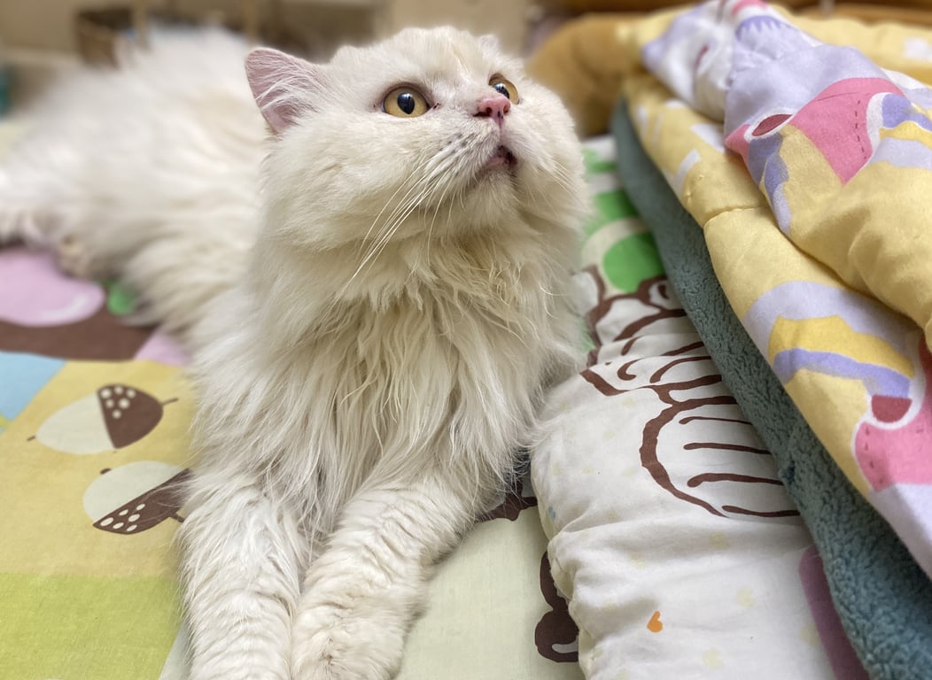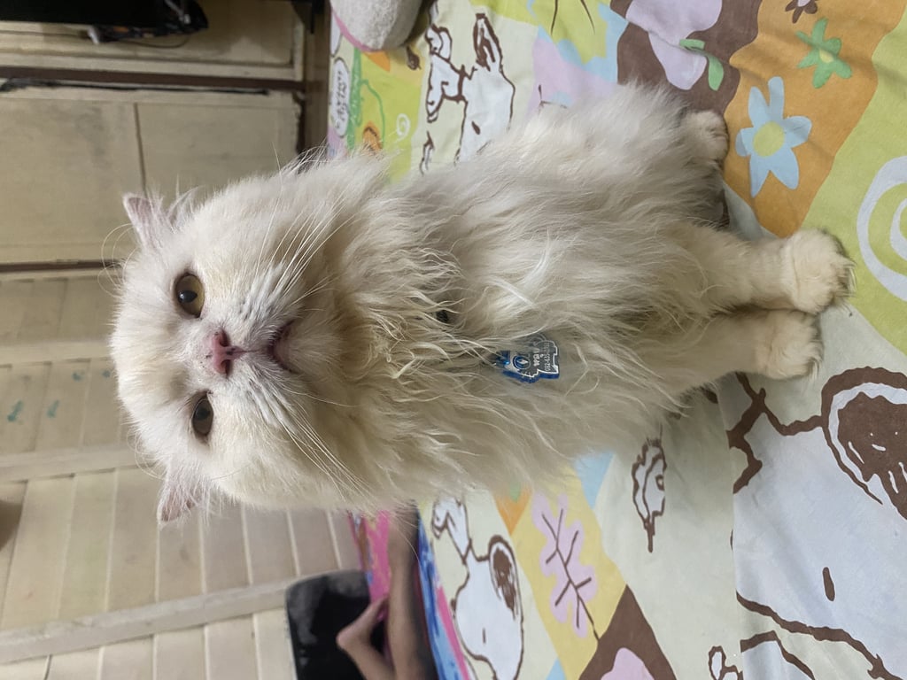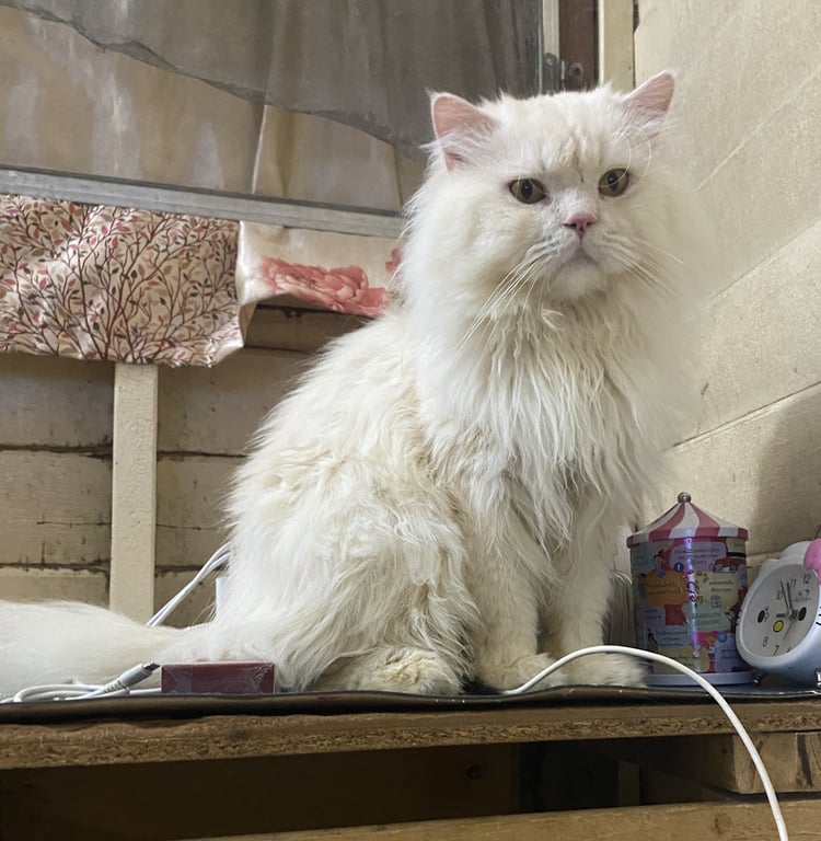 รอยตำหนิ: จมูกจะมีรอยเปื้อนสีดำแมวเปอร์เซียสีขาว ขนฟู ตัวใหญ่ นิสัยขี้กลัว ขี้ตกใจ