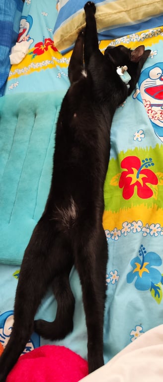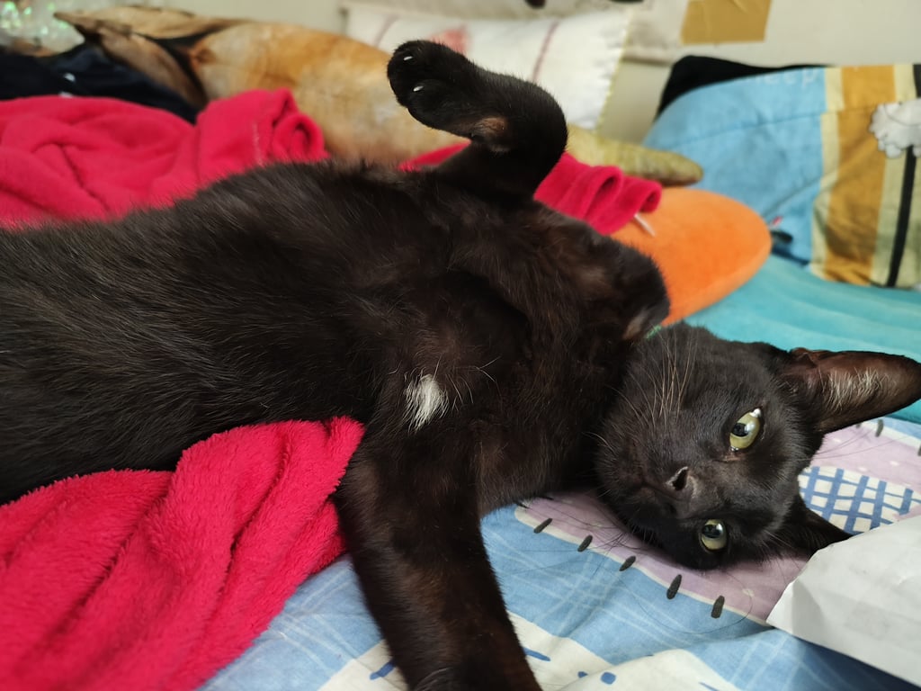 รอยตำหนิ: หางคด มีจุดในตาซ้าย ปลอกคอสีเขียวนีออนมีเบอร์โทรเชื่อง เข้าหาคน ขี้อ้อน แต่ถ้าเจอคนแปลกหน้าจะขี้กลัวมาก หลบใต้รถหรือหลบซ่อนเก่ง เวลากลัวจะไม่ค่อยส่งเสียง