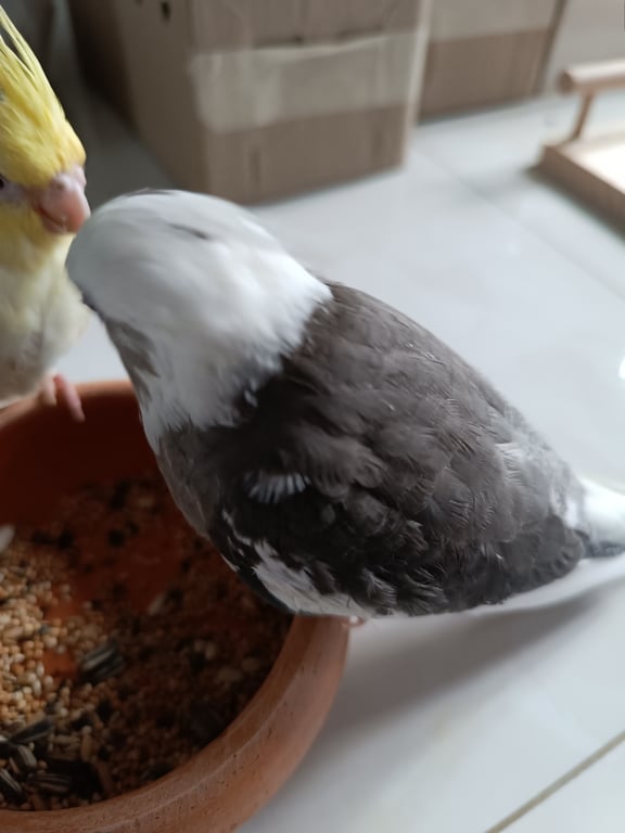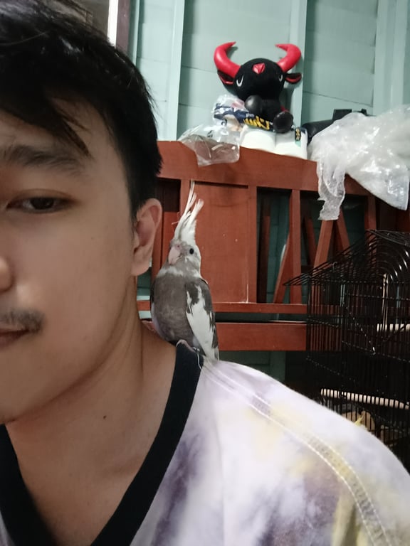 รอยตำหนิ: มีห่วงคล้องสายจูงที่จา 1 ข้างชอบเกาะไหล่, บินยังไม่แข็ง, เวลาหิวจะร้อง วี๊ด วี๊ดเป็นจังหวะ