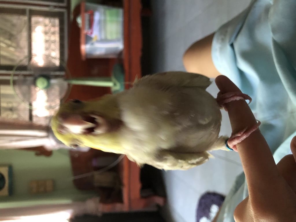 สี: แก้มส้ม หัวเหลือง ปีกเทา