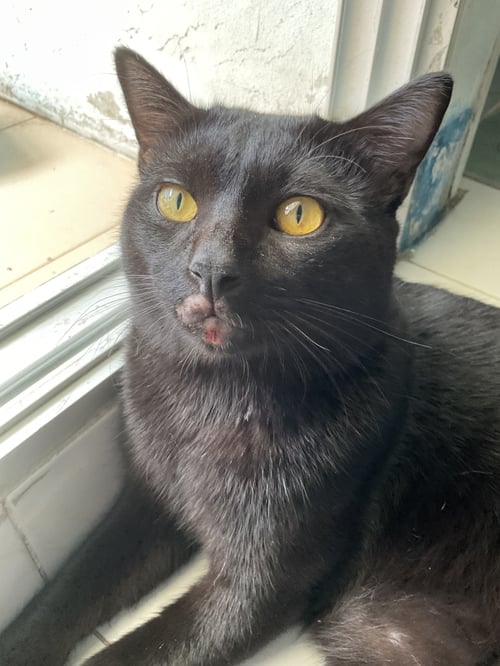 รอยตำหนิ: เขี้ยวล่างขวามือหัก มีจุดดำใต้ลิ้นฟันล่างเป็นแมวรัก สันโดษ ไม่กลัวคน แต่ไม่ให้อุ้ม