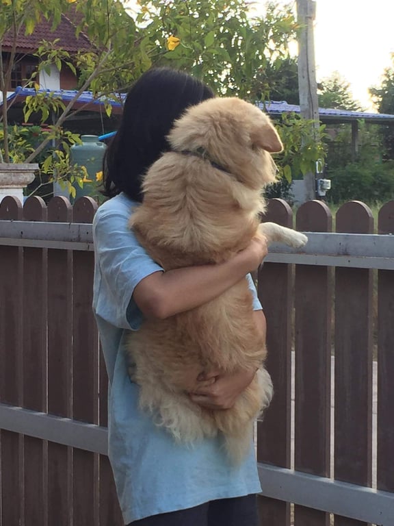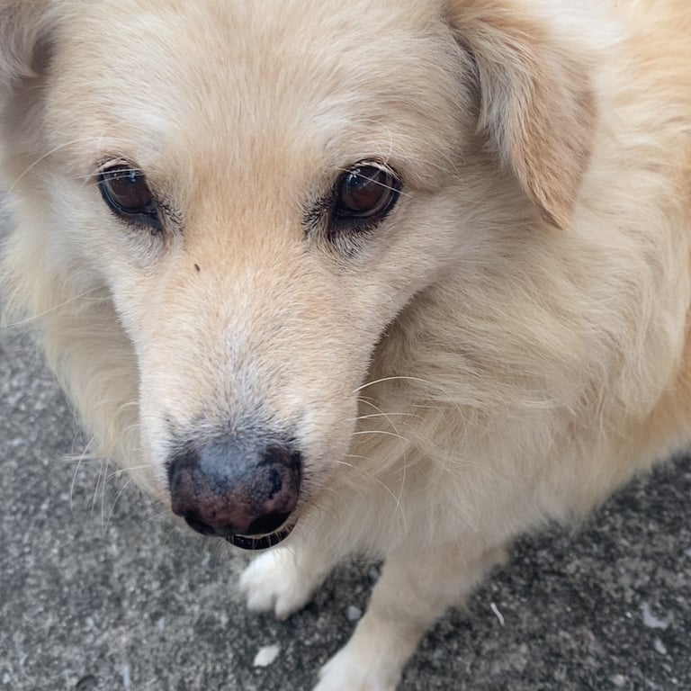 รอยตำหนิ: มีรอยแผลที่ขาหลังข้างซ้ายตัวค่อนข้างอ้วน ขนาดกลาง-เล็ก มีปลอกคอสีน้ำเงิน เขียว เหลือง ขนหนา(บางครั้งก็ปิดบังปลอกคอ)