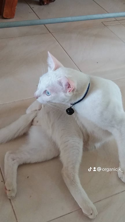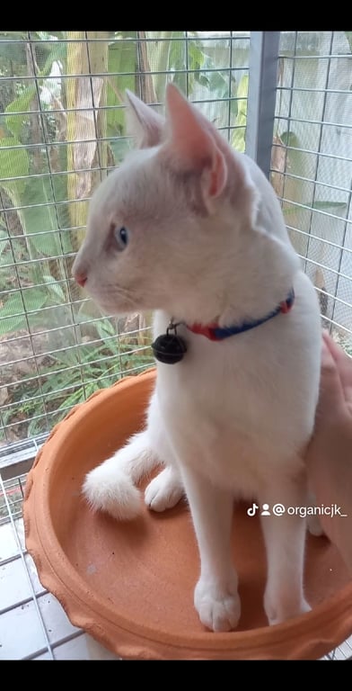 รอยตำหนิ: หางกวัก ตาสีฟ้า ปลอกคอสีแดง กระดิ่งสีดำ