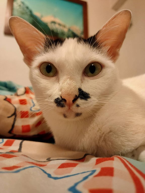 รอยตำหนิ: หน้ามีลายดำเหมือนหนวด และไฝจุดตรงปากขี้กลัว กลัวคน กลัวเสียง ไม่เคยเลี้ยงร่วมกับตัวอื่น