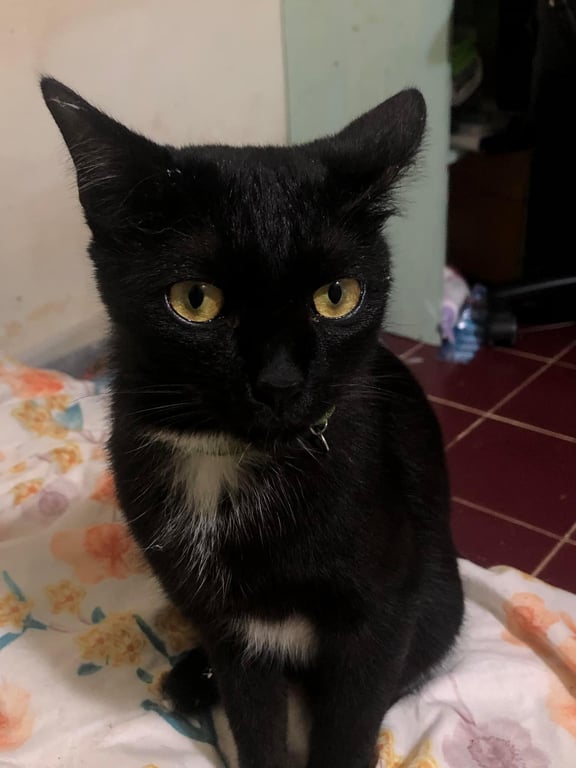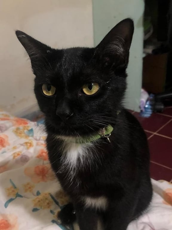 รอยตำหนิ: หางกวักตัวสีดำ อกขาว ท้องขาวบางส่วน ใส่ปลอกคอสีเขียว ไม่มีกระดิ่ง น้องขี้กลัว ขี้ตกใจ ไม่เคยมาต่างถิ่น กลัวฟ้ากลัวฝน