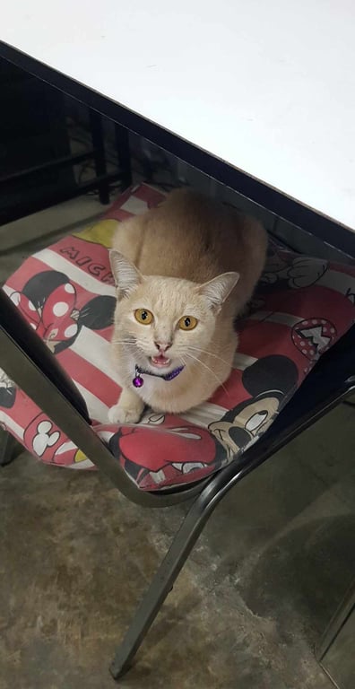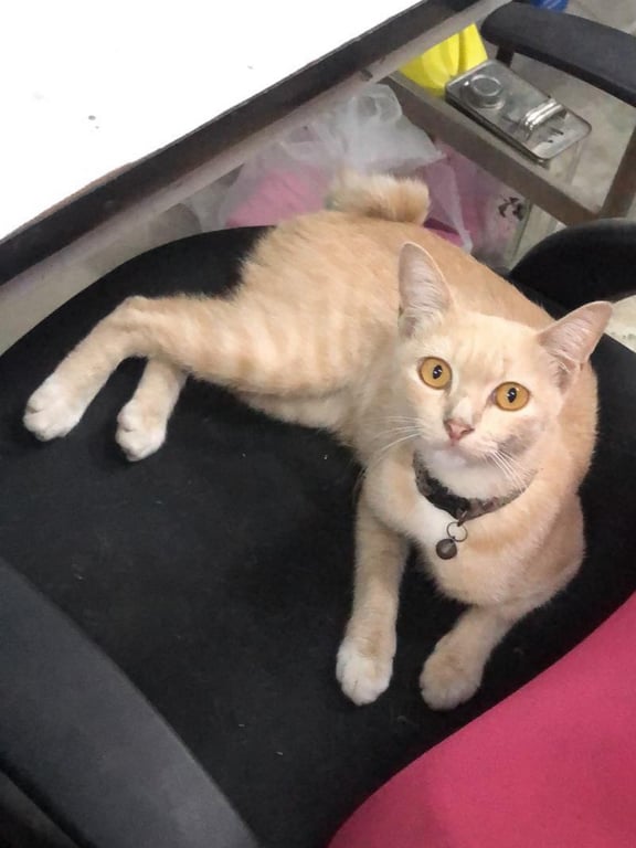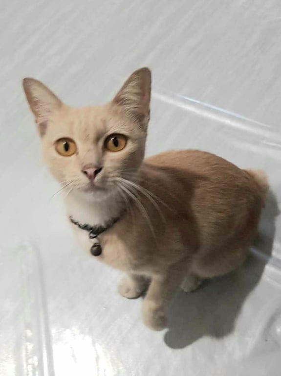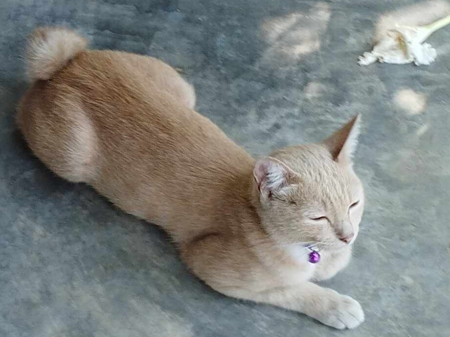 รอยตำหนิ: หางกุดใส่ปลอกคอสีม่วง หางกุด
