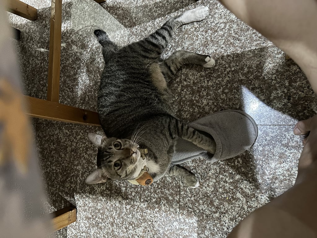 รอยตำหนิ: ปลอกคอลายดอกไม้สีส้มกับเหลืองหางหักเหมือนสายฟ้า ตัวอ้วนๆแต่หน้าหลิมๆเป็นแมวขี้กลัวมาก เจอเสียงมอไซค์ เสียงรถยนต์ก็วิ่งหนีแล้วไม่ค่อยให้ใครจับยกเว้นเจ้าของกับคุณแม่