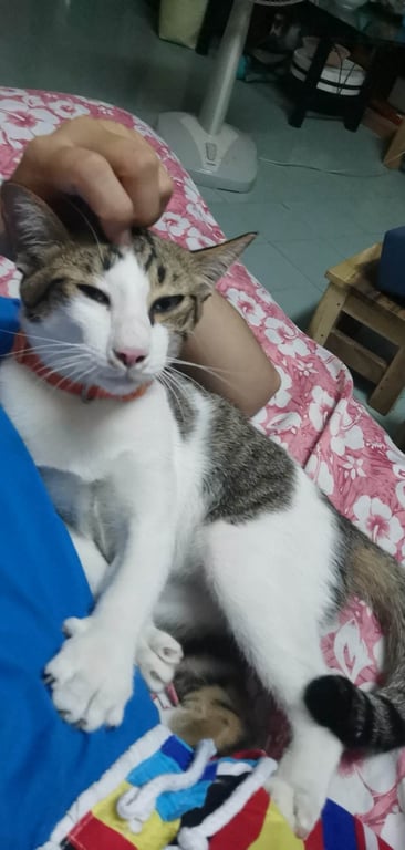 รอยตำหนิ: น้องมีอาการตาอักเสบ จะมีเปลือกตาเหลือกขึ้นมาบางครั้งน้องขี้อ้อนมากๆ ชอบมานวดให้ และให้ลูบหัว ไม่กลัวคนชอบเล่นไม้ตกแมว