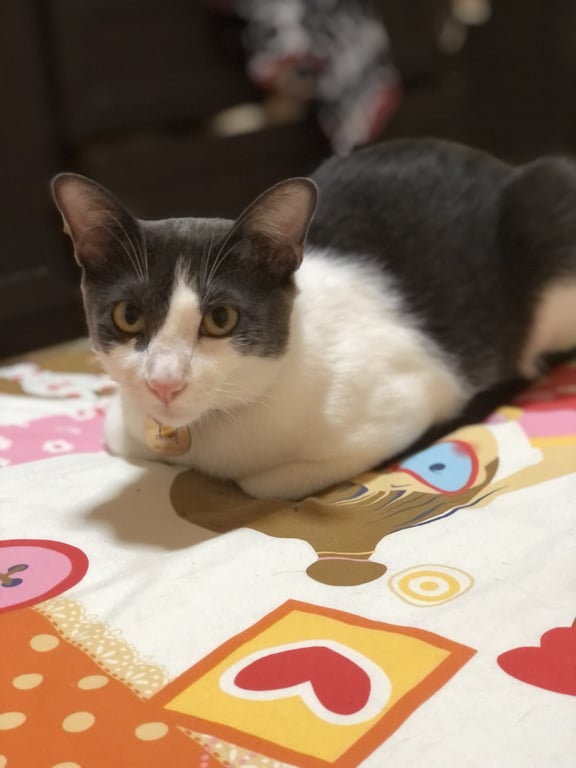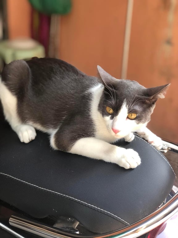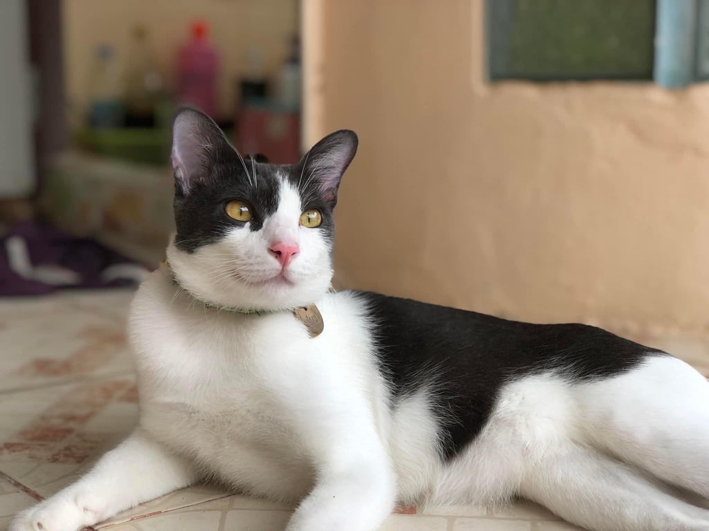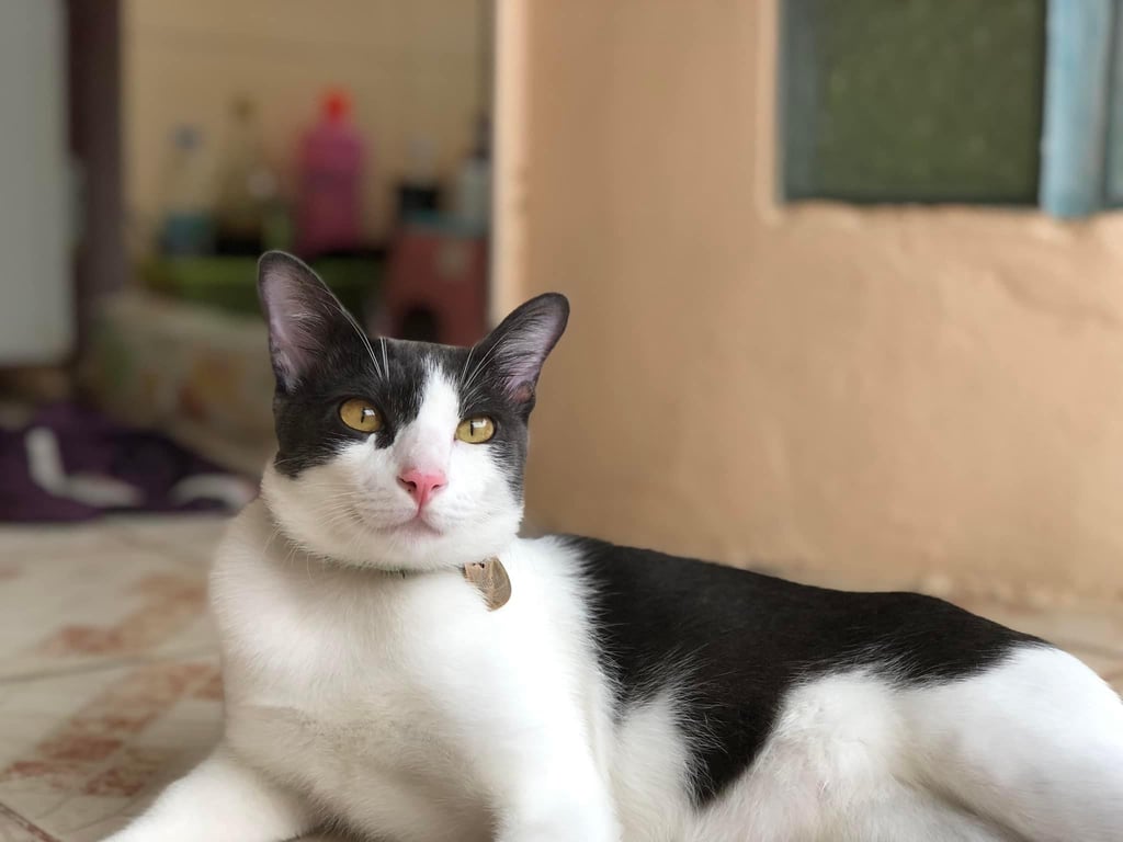 รอยตำหนิ: มีขนสีดำใกล้ฝ้าเท้าซ้ายข้างหน้านิสัยขี้อ้อน ชอบเล่น แต่ชอบเที่ยว มักร้องออกนอกบ้าน