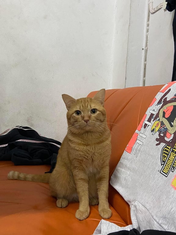 รอยตำหนิ: หางมีรอยแผลเชื้อรา ปลอกคอสีม่วงแถบสะท้อนแสงกลัวคน กลัวเสียงรถ แววตาเศร้า