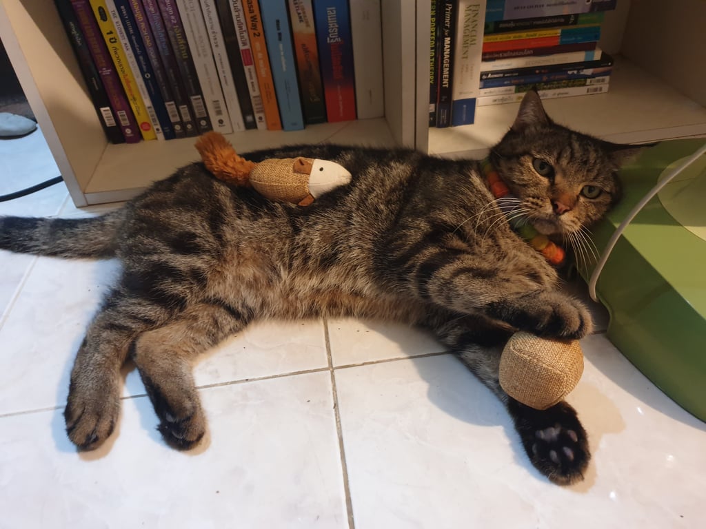 รอยตำหนิ: ขนหายที่ไหล่ซ้าย เพราะเพิ่งโดนรักษามาหน้าดุ เข้าคนไปเรื่อยถ้ามีอาหาร