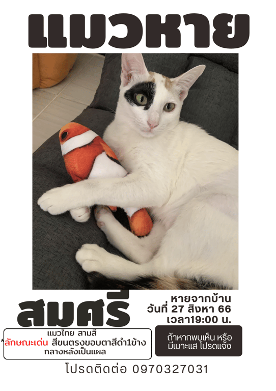 รอยตำหนิ: มีแผลที่หลัง ขอบตาสีดำติดคน เข้าหาคนเก่ง ขี้อ้อน
