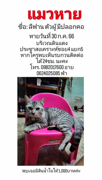 รอยตำหนิ: หางจะฟูๆหน่อย แต่ไม่มากครับ (พบเห็นล่าสุดไม่มีปลอกคอแล้วครับ)ขี้เล่น ขี้อ้อน