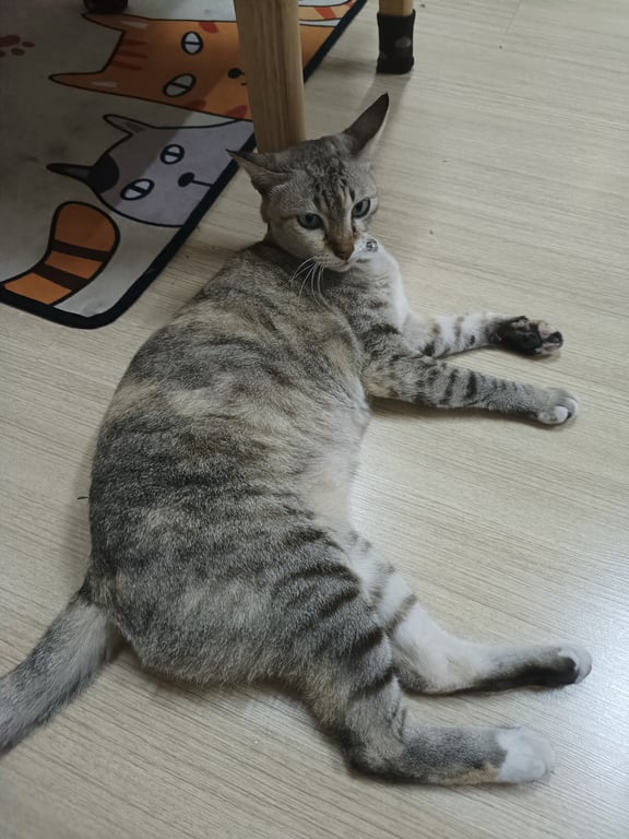รอยตำหนิ: นิ้วมือมีสองสีแมวสีออกเทาๆ นิ้วมือสีสองสี ชมพูและดำ มีปลอกคอ เดินหายออกไปจากที่หมู่บ้านเด่นชัย สำโรง สมุทรปราการ แมวแก่แล้ว อายุ10ปี นิสัยดุร้ายมาก หาข้าวกินเองไม่ได้ ชอบตบตีทะเลาะกับแมวอื่น