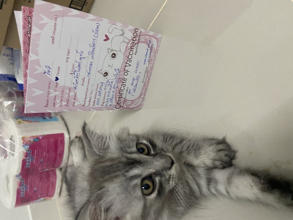 รอยตำหนิ: อางดำขี้เล่น ซน ชอบกัดเล่นตามประสาแมว ชอบกินน้ำเย็น กลัวคนแปลกหน้า