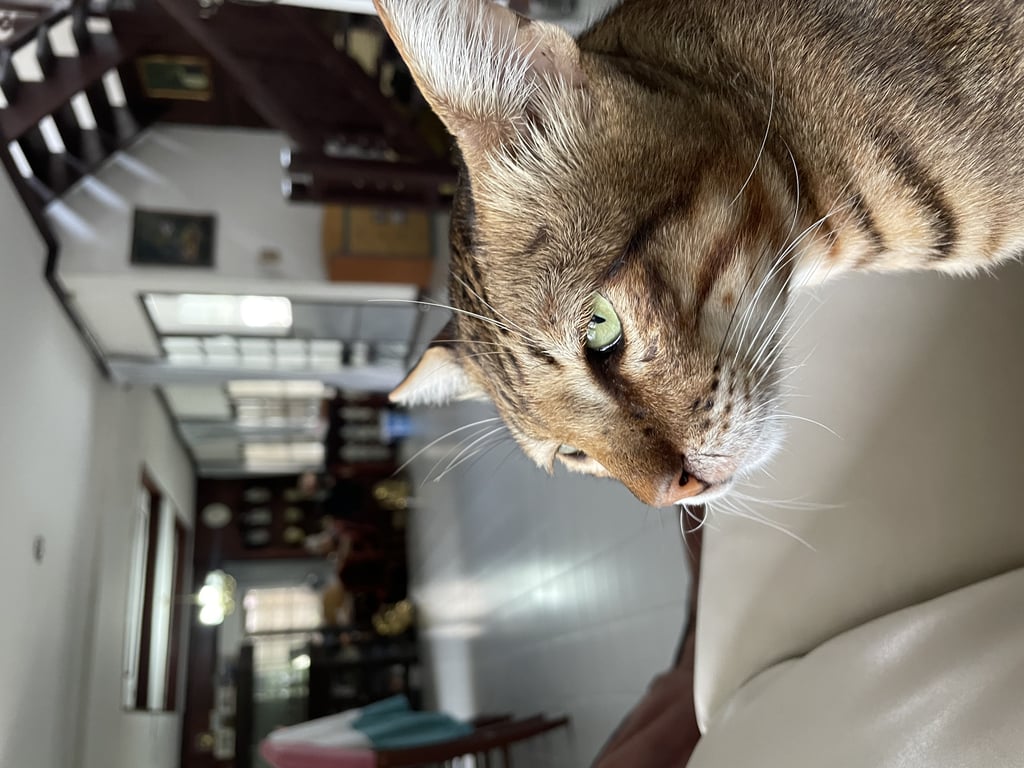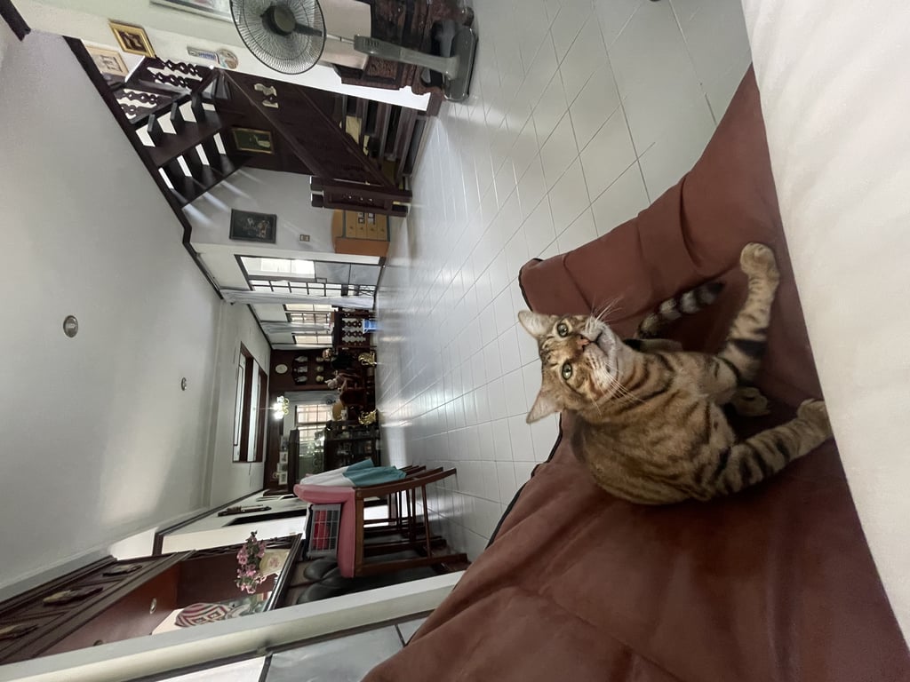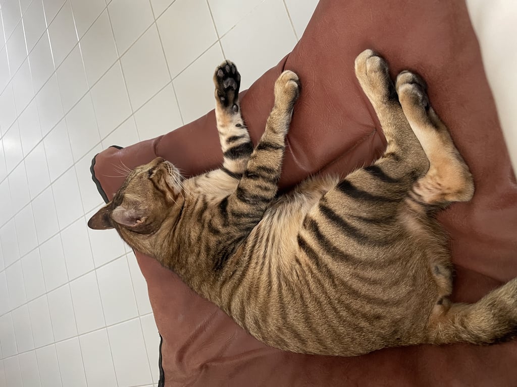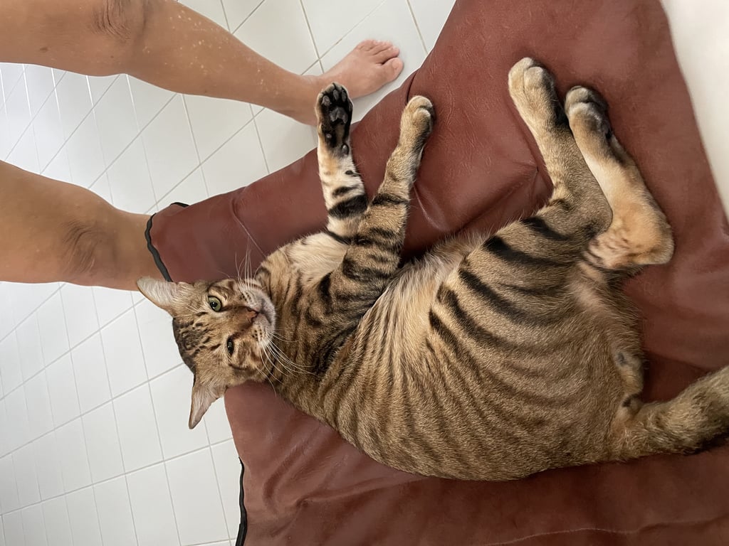 รอยตำหนิ: ตัวอ้วน หางเล็ก ลายเหมือนเสือ ไม่ใส่ปลอกคอใจดีกับคน ดุกับแมวอื่น กินเก่ง เรียกง่าย