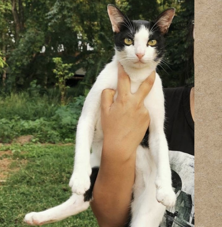 รอยตำหนิ: หางสั้น ใส่ปลอกคอสีดำขี้กลัว แต่ถ้าถืออาหารจะวิ่งเข้ามาหา