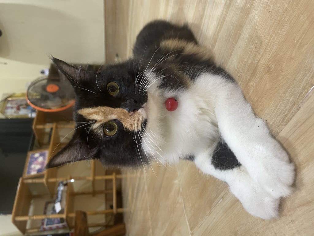 รอยตำหนิ: หางหัก มีสีส้มบนใบหน้านิสัยค่อนข้างขี้กลัว ไม่ชอบให้ใครอุ้ม ขี้อ้อนกับคนที่สนิท