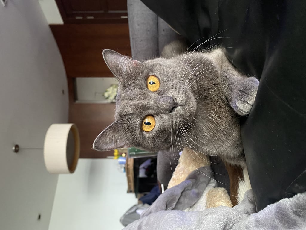 รอยตำหนิ: ดวงตาสีเหลือง สีเทา หางยาว ขนยาวตรงท้องมีนิสัยขี้กลัวชอบหลบซ่อนวิ่งหนี แต่เป็นแมวที่น่ารักและอ่อนโยน