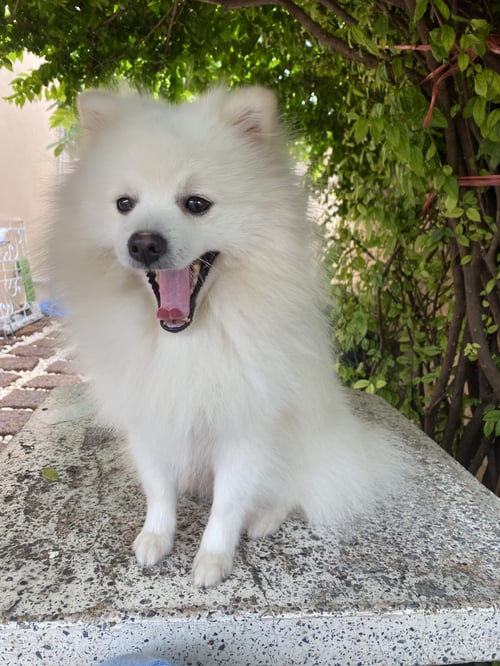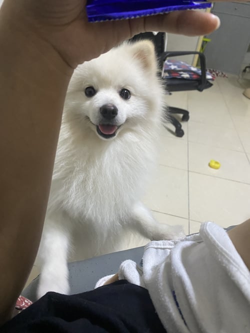 รอยตำหนิ: หูตั้ง ขนฟู มีรอยแผลตรงจมูก มีฟันซ้อนตรงฟันล่าง2ซี่อายุ1ขวบ10เดือน ลักษณะนิสัยเข้ากับคนและสัตว์ตัวอื่นง่าย เป็นมิตร ชอบเล่น ยิ้มตลอด