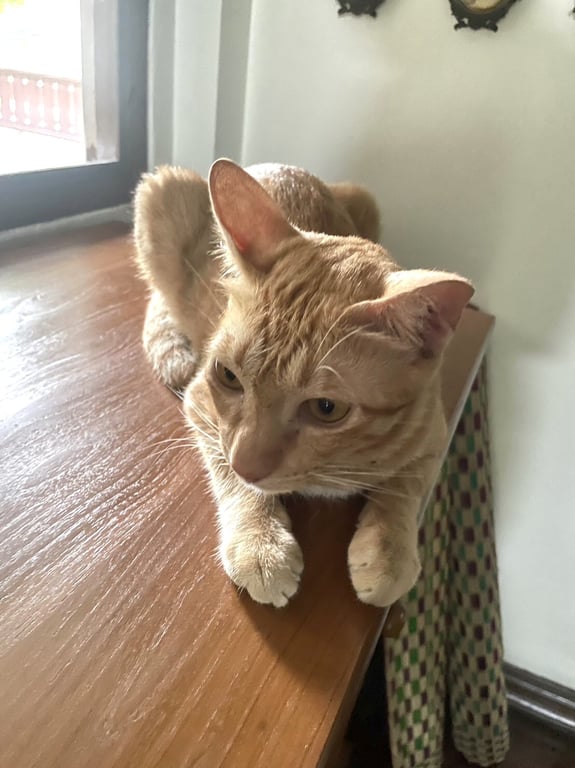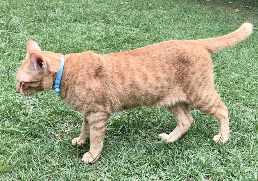 รอยตำหนิ: วงน้ำตาล 2 วงที่ปลายหางหนัก 4.2 กก. ตาสีเหลือง หน้าเล็ก ตัวยาว หางไม่ขอด นิสียเชื่อง ชอบคุย ชอบสำรวจพื้นที่