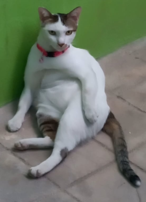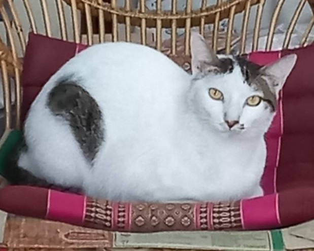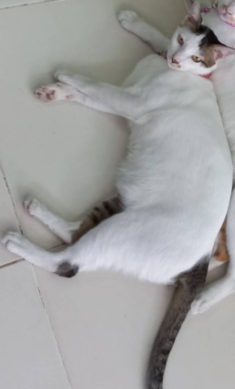 รอยตำหนิ: มีลายสลิดที่หัวมี ลายที่หางทั้งหมดหางยาว ที่ขาหลังขวาด้านใน ที่ตัวฝั่งขวาก็มีลายสลิดรูปวงรีเล็กน้อย ฝั่งซ้ายจะขนขาวไม่มีลายชอบไปเที่ยวระแวกบ้านไม่นานก็กลับ จะไปเที่ยวช่วงเช้าไม่ก็ช่วงเย็น เคยไปนานสุดไม่เกิน3วัน ไม่รู้ว่ามีใครอุ้มไปหรือโดนหมาไล่เลยหนีเตลิดไปไกล มีโรคประจำตัวคือเลือดน้อย นิสัยขี้เล่น ไม่ดุ เข้ากับคนง่าย *ใครพบเห็นแล้วจับน้องไว้ให้หรือใครที่เอาน้องไปเลี้ยง เจ้าของขอคืนด้วยนะคะ เพราะรักมากค่ะ ใครส่งคืนมีรางวัลให้ค่ะ