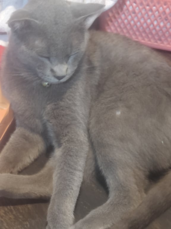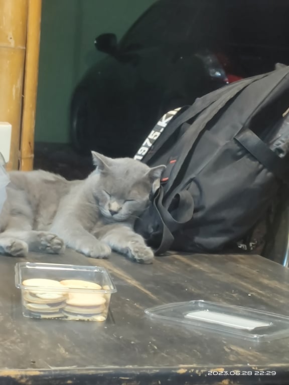 รอยตำหนิ: มีขนสีขาวใต้คอ1จุด มีแผลเป็นขนไม่มีน่องขาหลังซ้ายเชื่องคนจับง่าย ชอบแอบไปนอนใต้ต้นไม้ ไม่ค่อยมีเสียงร้อง