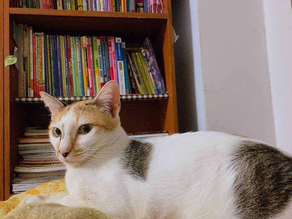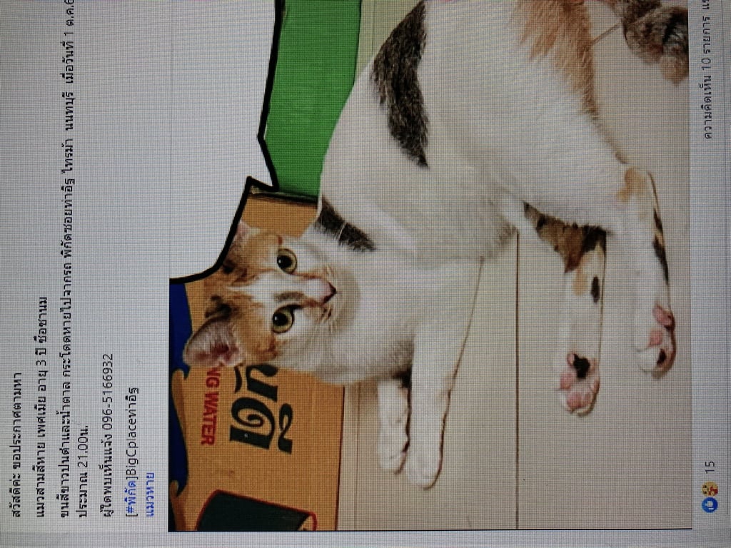 สี: แมวสามสี สีขาว มีดำปนน้ำตาล