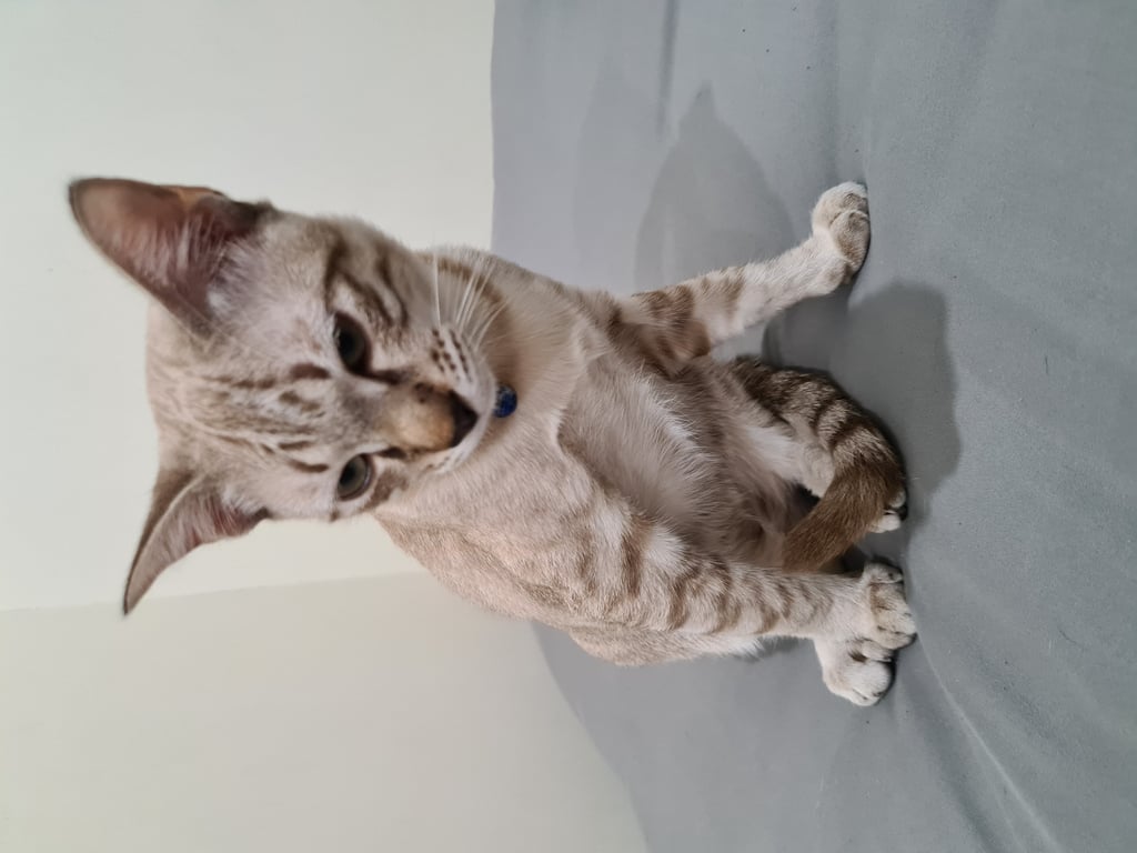 รอยตำหนิ: จมูกสีดำ ใส่ปลอกคอสีน้ำตาล