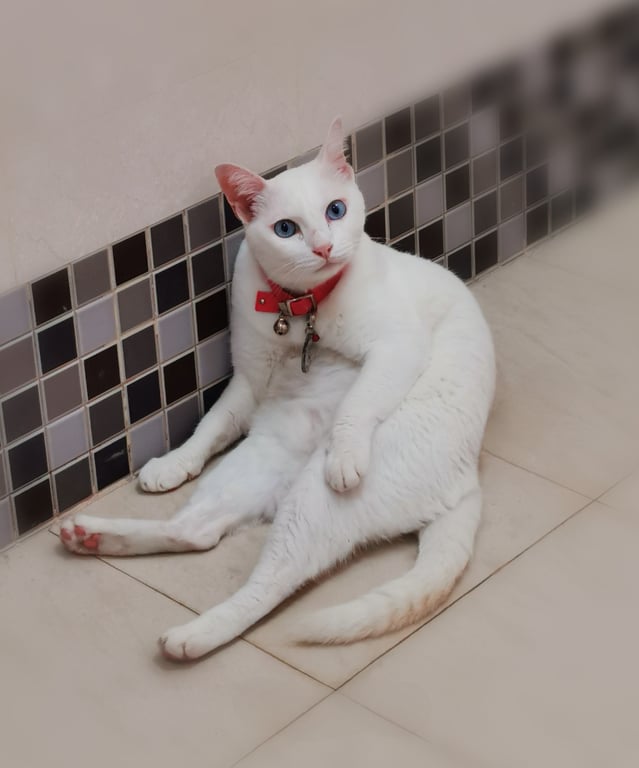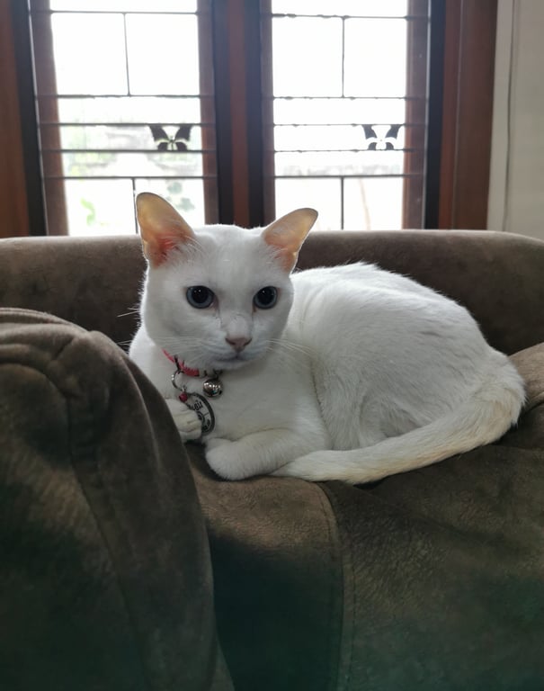 รอยตำหนิ: ตาสีฟ้า ใส่ปลอกคอสีชมพู มีป้ายชื่อ "น้องจิ๋ว"