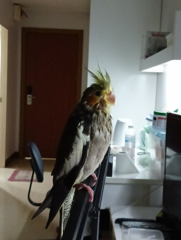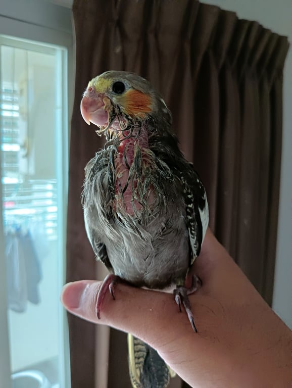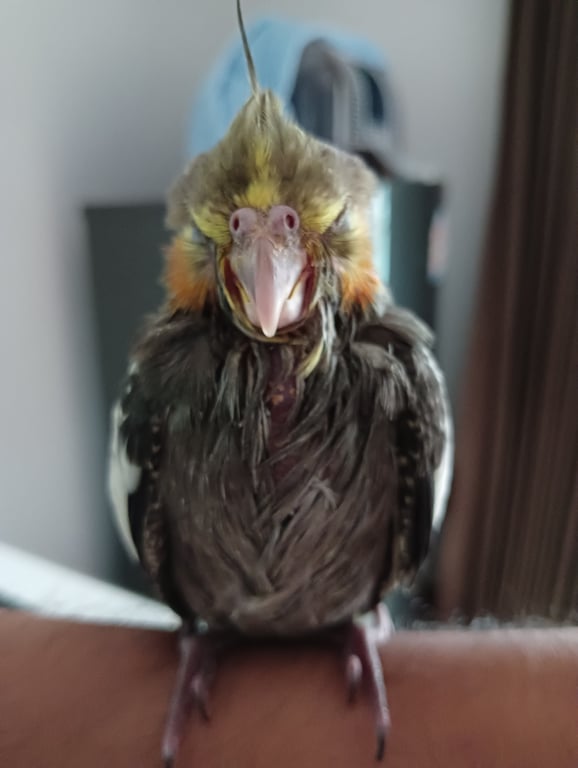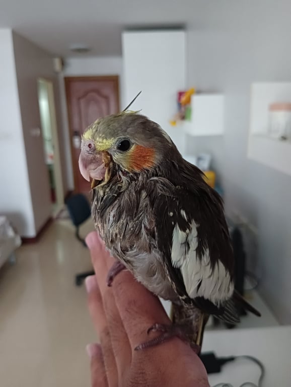 รอยตำหนิ: ขนใต้คอและหน้าอกยุ่งเหยิง ขนหน้าอกและขนใต้คอแห้ง แข็ง และมีรอยเปื้อนอาหารลูกป้อนตามขนหน้าอกและใต้คอ หางช้างซ้าย(ขวามือมนุษย์)หลุดออกมา1เส้นเชื่องคน ติดคน เข้ากับนกอื่นไม่ค่อยได้ ชอบแยกตัวออกมาจากเจ้าของเวลากินอาหารเสร็จแล้ว ไม่สุงสิงกับนกอื่น ขี้อ้อน ไม่ชอบอยู่ในกรง ชอบบินเล่นในห้อง อินดี้ โลกส่วนตัวสูง ขี้อิจฉาและมองแรง(กรณีรับนกอีกตัวมาเลี้ยงด้วย) หวงเจ้าของ