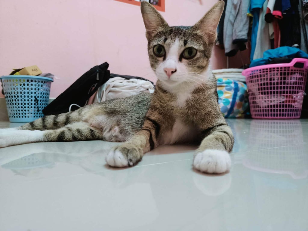 รอยตำหนิ: หางยาว จมูกสีชมพูชอบคน ให้จับให้อุ้ม รุู่้จักชื่อตัวเอง