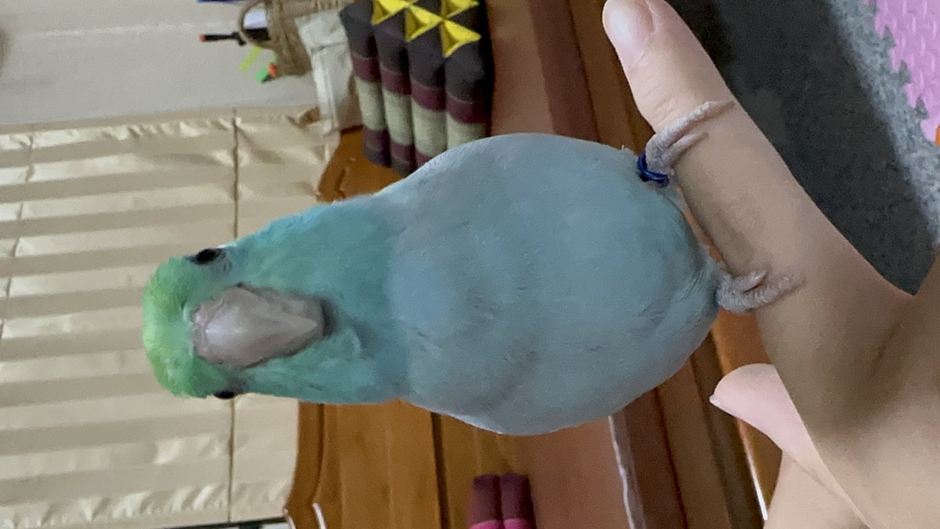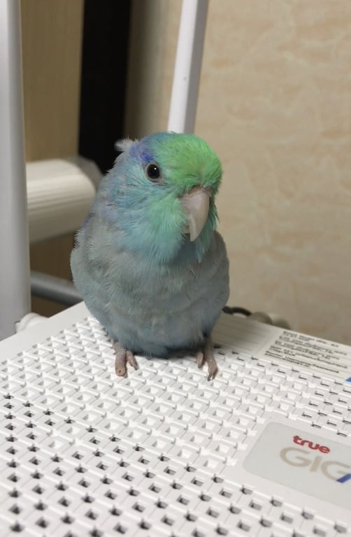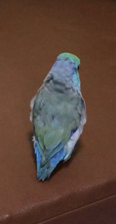 สี: บลูเทอควอย (หน้าเขียว หัวฟ้า หลังสีเทาๆ)