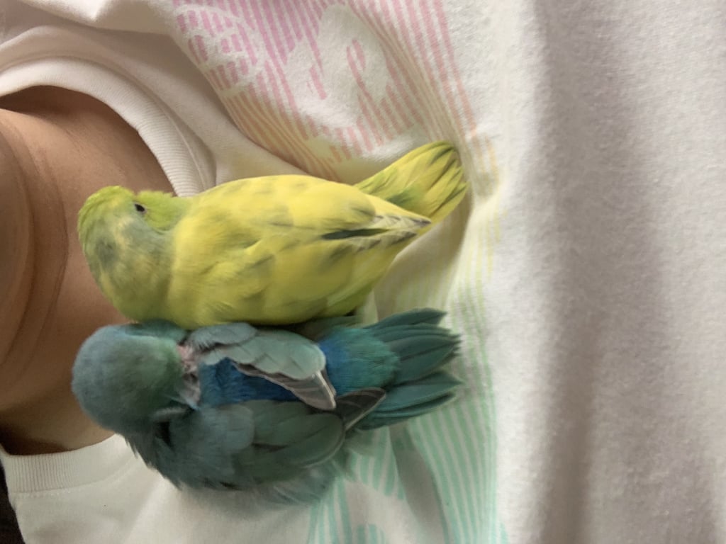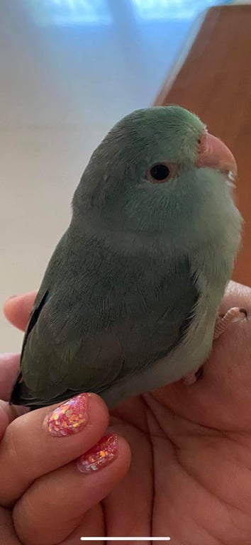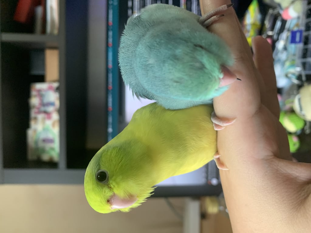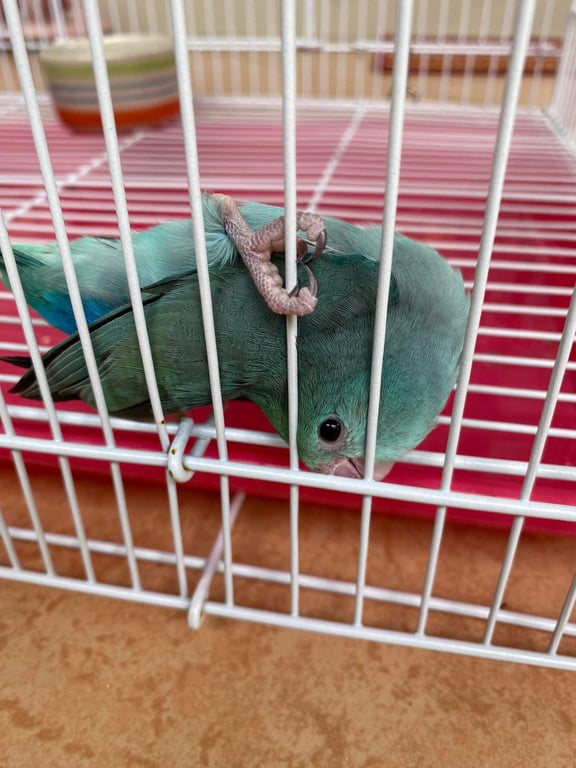 รอยตำหนิ: เล็บดำเต็มเล็บทุกนิ้ว ทั้งตัวไม่มีสีเขียวเฉพาะจุด แต่สีฟ้าอมเขียวทั้งตัวซนมาก ชอบปีนป่ายไปมา และร้อง ปิ๊บๆ ชอบอ้าขากว้าง นั่งตูดติดพื้น ถ้าน้องอ้อนในกรง จะชอบเอาปากมาซุกตรงช่องซี่กรง หรือบางทีจะเกาะกรงแล้วตีลังกากับพื้น เพื่อเรียกร้องความสนใจ